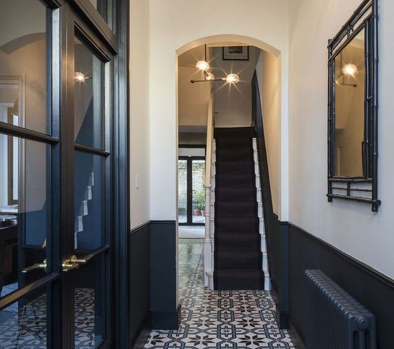 Dark paint in a hallway including painting the walls, skirts and daydoe using the same paint. Standard comment - 'Oh you dont want to do that, it won't look right and it will show up all the dirty marks.